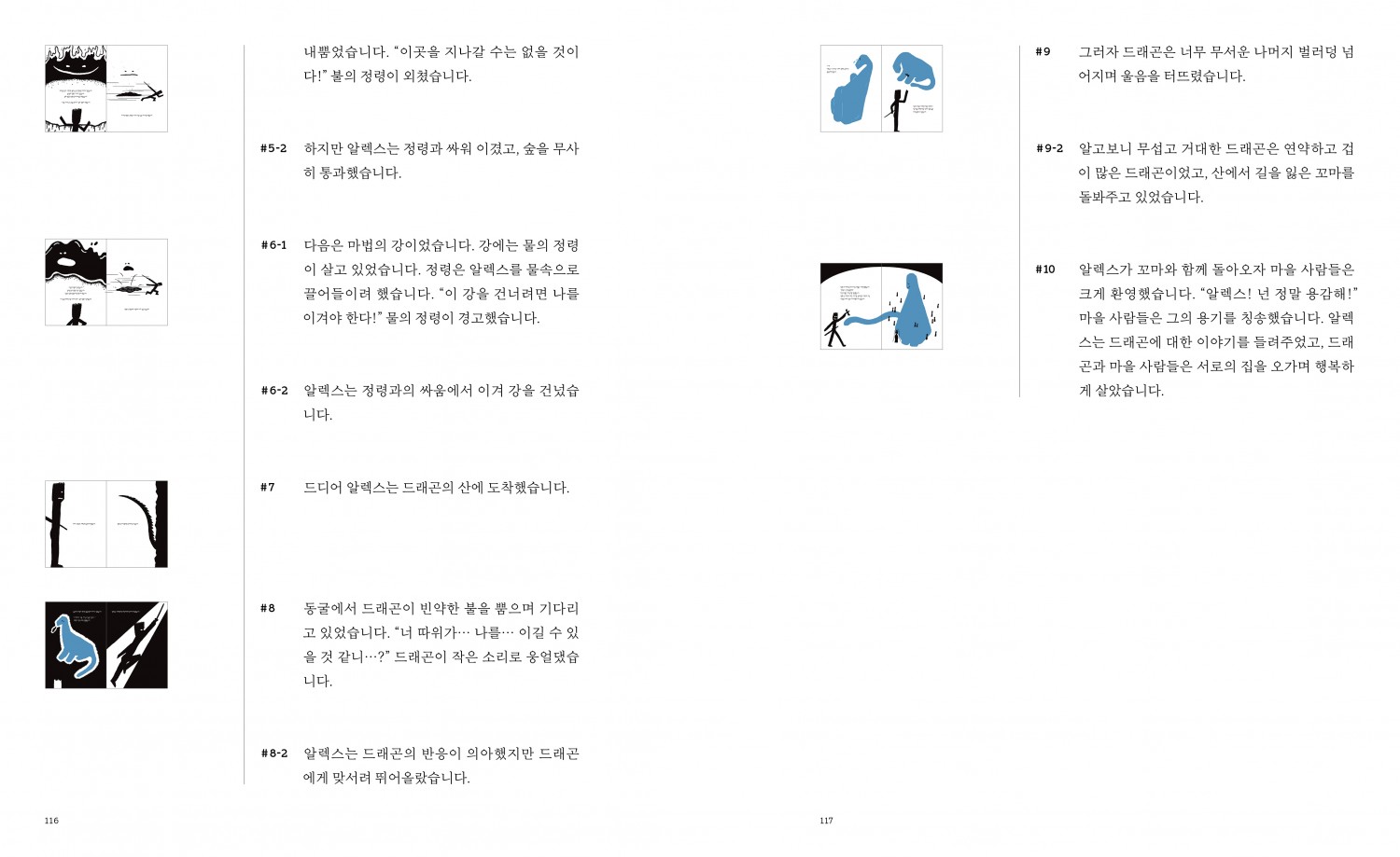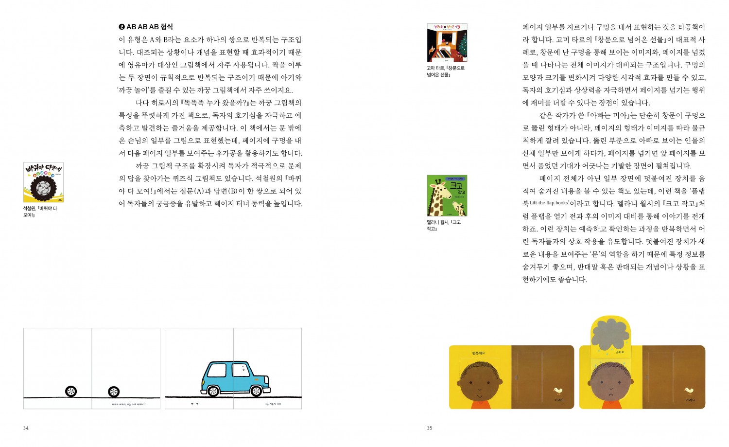 ”무언가를 가르치기 위해서는 사람들이 어려워하는 지점이 무엇인지, 그들이 겪는 괴로움은 어떤 것인지 이해하고, 필요한 연습 과제와 적절한 비계(scaffolding)를 설정해야 합니다. 그러려면 배우는 사람에 대한 관심과 관찰, 인내심이 필요합니다. 다행인지 불행인지 저는 천재가 아닙니다. 그림책 만드는 일이 결코 쉽지 않고, 여전히 어렵습니다. 새로운 그림책을 만들 때마다 처음 이 일을 시작했을 때처럼 여전히 헤맵니다. 한 권을 만들고 나면 다음에 더 나은 그림책을 만들기 위해 고민하죠. 이 책은 이러한 제 경험과 시행착오를 토대로 ‘이러한 도움이 있었으면’ 하고 생각했던 지점들을 녹여내어 만들었습니다.“ _「들어가며」에서